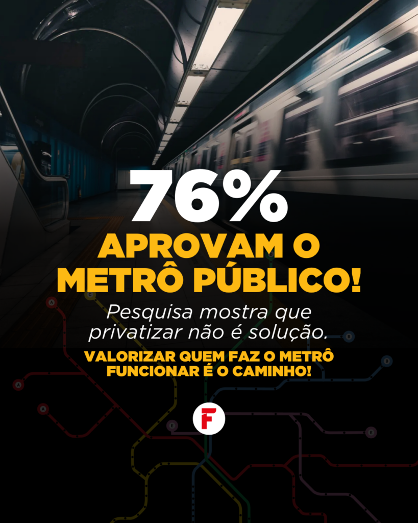 Se a própria população reconhece a qualidade do serviço, o caminho é fortalecer o Metrô público — com concurso, valorização profissional e investimento — e não entregar um patrimônio construído com recursos públicos à lógica do lucro.